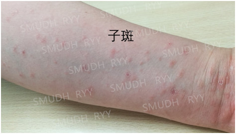 皮疹瘙痒程度因人而异,一般瘙痒较轻微甚至不痒。一般皮疹较为集中于躯干和四肢近端,远端和面部较为少见。